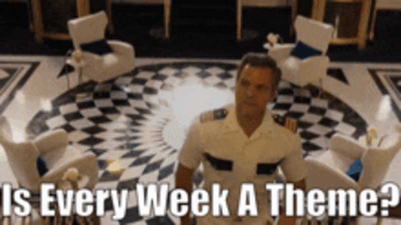 In the midst of navigating the choppy waters of this dynamic—get it, waters… because it’s a cruise—they have to deal with the craziness that happens during each cruise’s themed weeks.